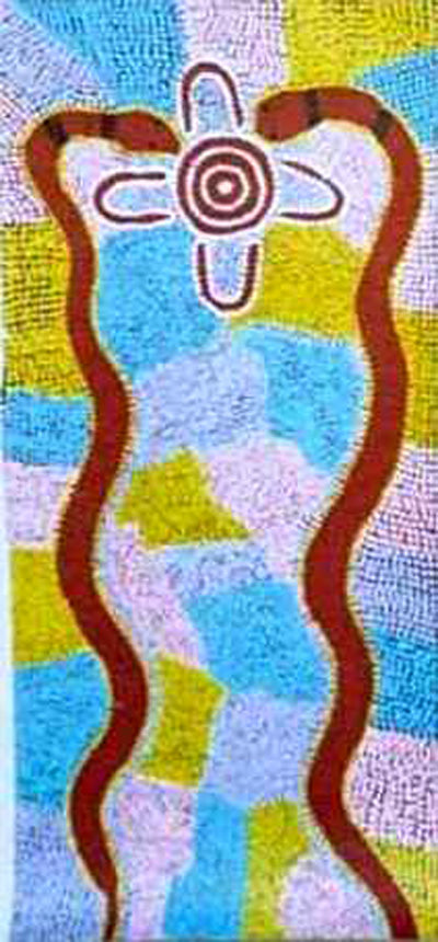 Being the cousin of Clifford Possum and Billy Stockman, and elder brother of Kaapa it was logical for him begin painting with the artists at the centre of the acrylic movement at Papunya. His work is painted with great precison, beautiful colours and intricate designs that reflect the importance of his role as a senior Walpiri man. The Dreamings that feature in his work are Water, Willy Willy, Pelican, Emu, Bush Turkey, Goanna and Bush Fire.