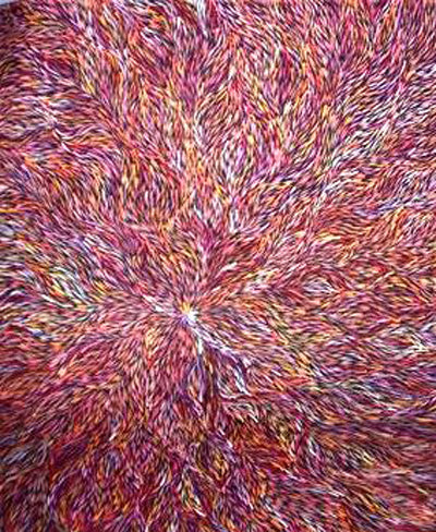 It is no mistake that Jeannie is a highly talented artist. She received the knowledge of her dreaming and painting techniques from her famous aunt, Emily Kame Kngwarreye. Gloria, Kathleen and her sister Ada Bird Petyarre were also strong influences on her development.