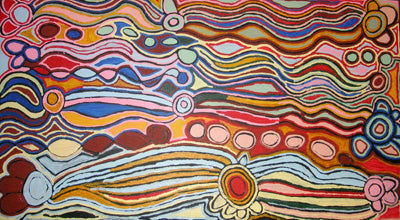 Her dynamic use of colour and unique dragged dotting has become a part of her popular and distinctive style. Judy Watson was has been included as one of Australia's 50 most collectable artists by the prestigious Australian Art Collector magazine. Her work continues to be exhibited worldwide and collected by large institutions and private collectors.