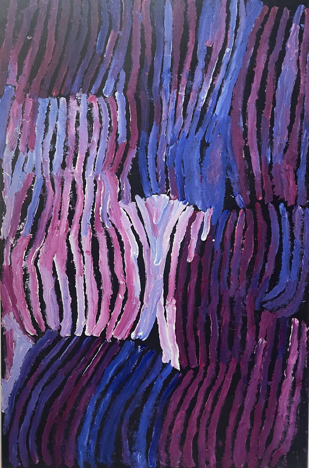 Her works are bright, captivating and expressive, showing her deep understanding and connection to her culture and country. They are often reminiscent of the ceremonial body-paint adorned by the women. Makinti's paintings feature in public and private collections throughout the world.