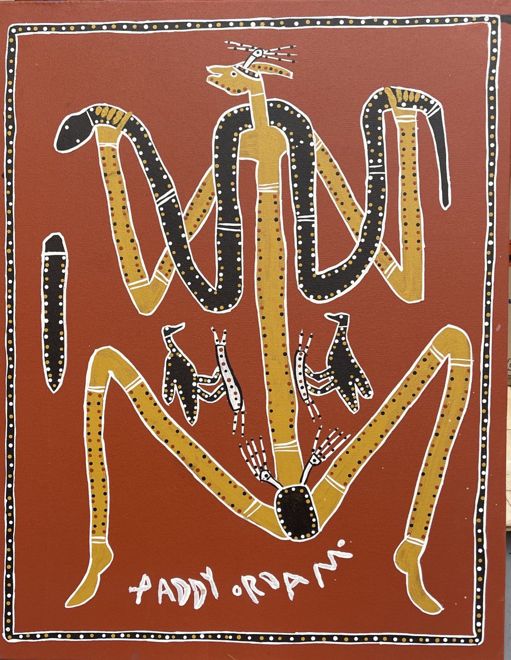 Paddy was a stockman until 1962, working at stations throughout the Northern territory from Mataranka to Oenpelli, Goulburn Island and Milingimbi. When Aboriginal rights to citizenship came through in 1962, Paddy returned to his relations in Beswisk, where in th 1980's he began committing his stories to bark. Having moved to canvas, paper, linen and murals Paddy became and acclaimed artist. He is renowned for his distinctive portrayals of Mimi spirits. They are brilliant displays of lucid communication of traditional Aboriginal culture. His work continues to be exhibited and collected internationally.