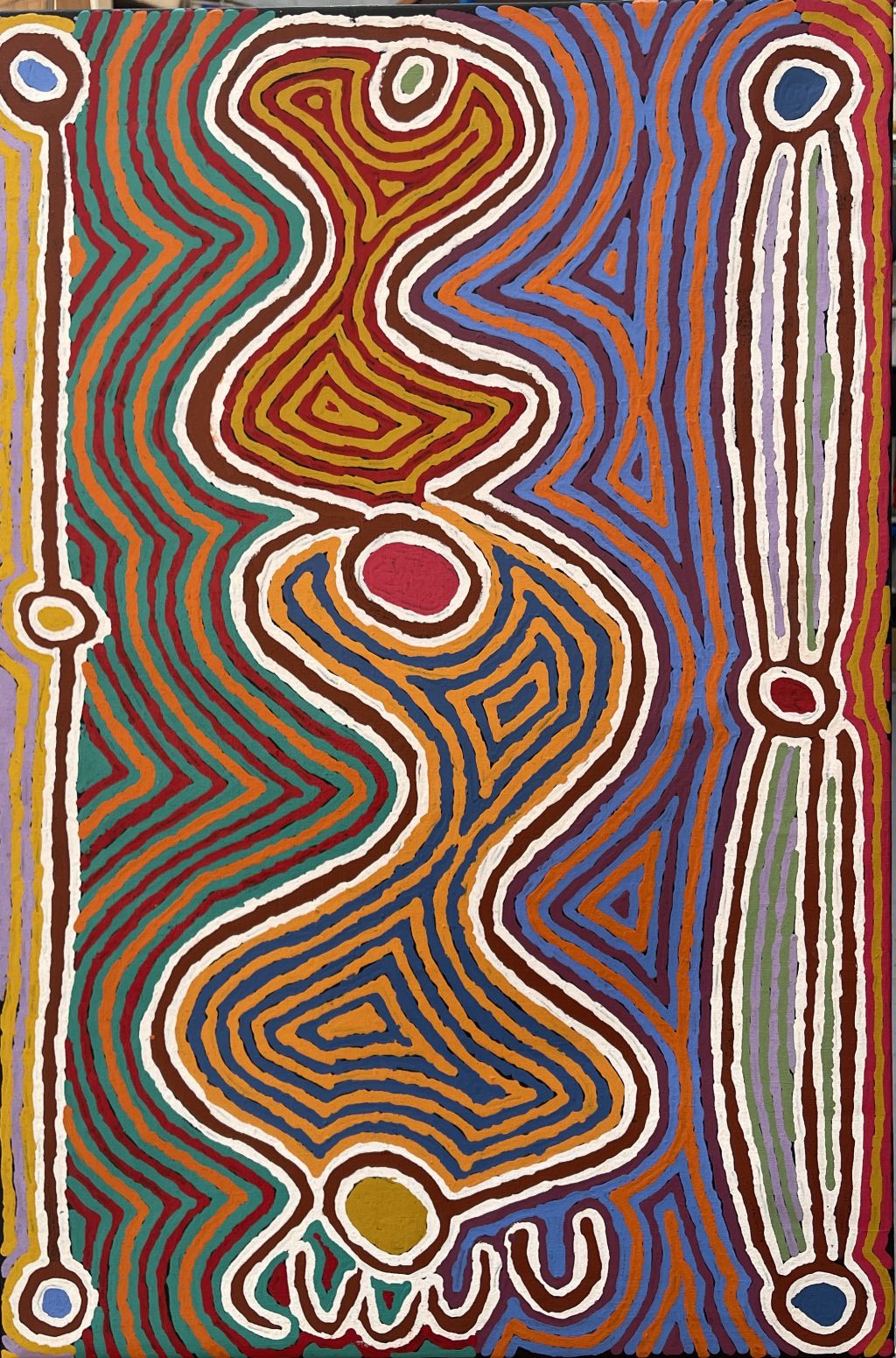 Her dynamic use of colour and unique dragged dotting has become a part of her popular and distinctive style. Judy Watson was has been included as one of Australia's 50 most collectable artists by the prestigious Australian Art Collector magazine. Her work continues to be exhibited worldwide and collected by large institutions and private collectors.
