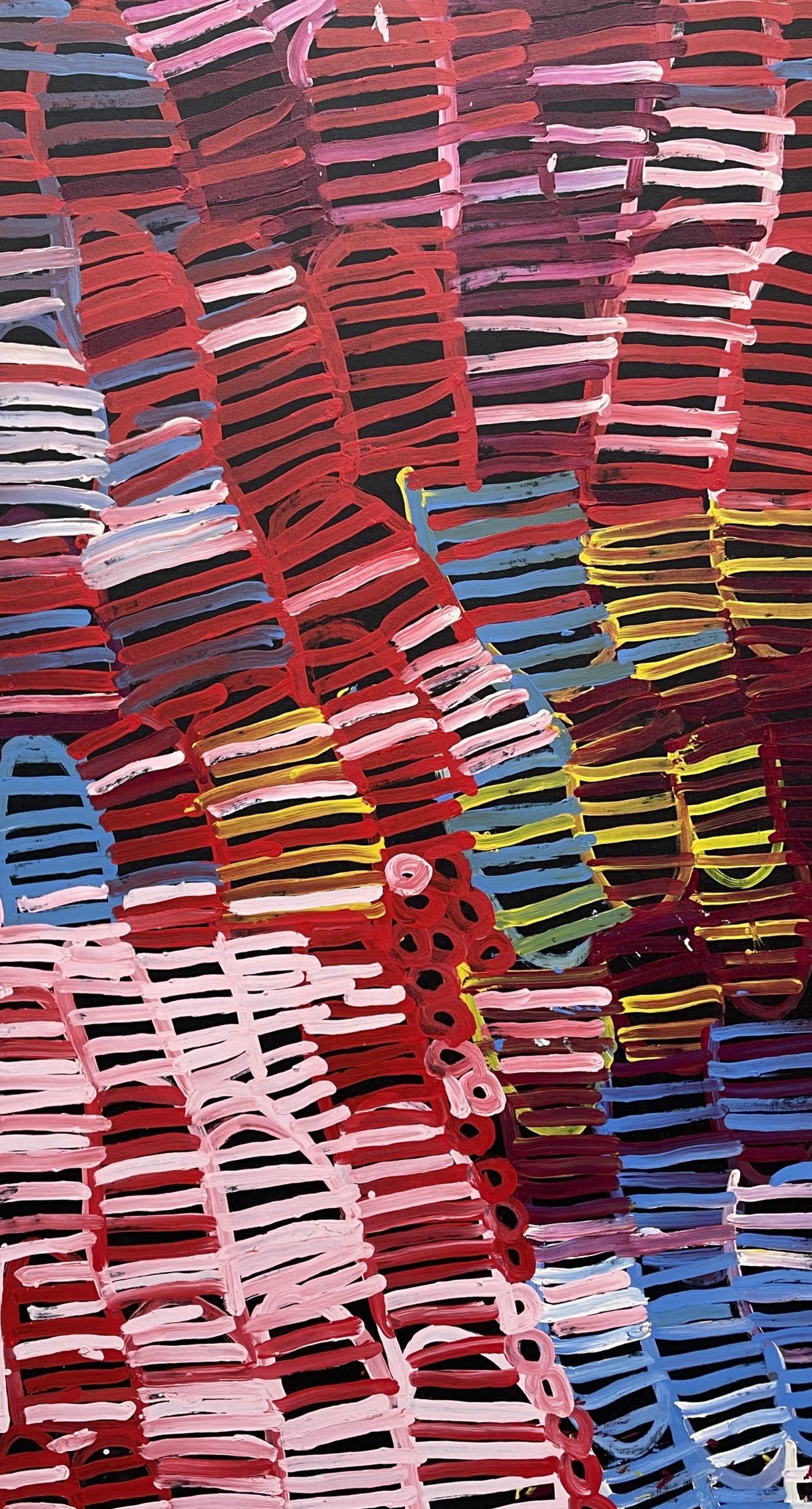 Through these elements Minnie was able to brilliantly articulate her Dreamings, representing body paint designs used my her community and ancestors as well as bush plum, with vitality and vibrancy. Her work is a brilliant example of Aboriginal art and it‘s survival in contemporary society. Her work is exhibited and collected throughout the world.