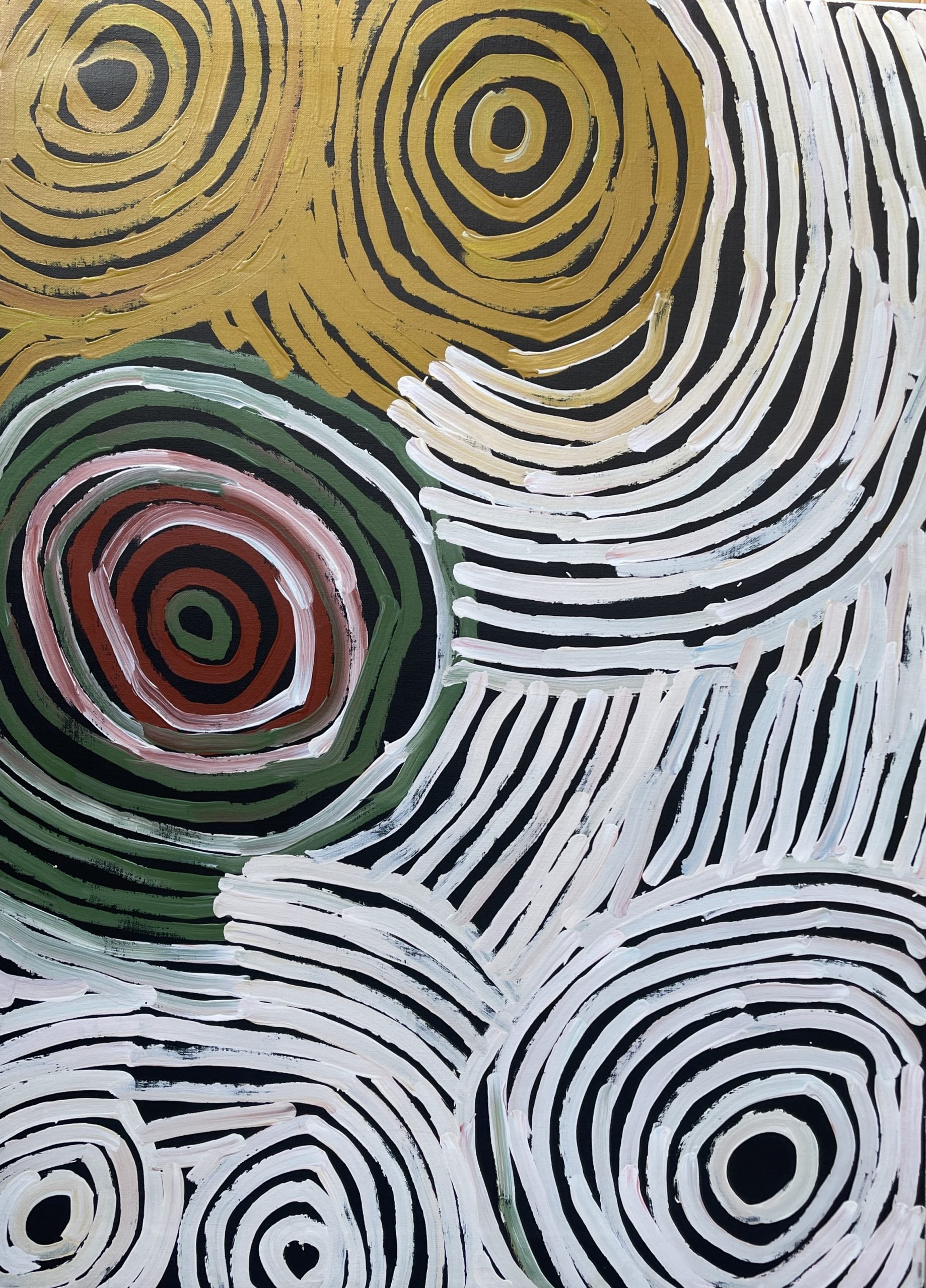 Through these elements Minnie was able to brilliantly articulate her Dreamings, representing body paint designs used my her community and ancestors as well as bush plum, with vitality and vibrancy. Her work is a brilliant example of Aboriginal art and it‘s survival in contemporary society. Her work is exhibited and collected throughout the world.