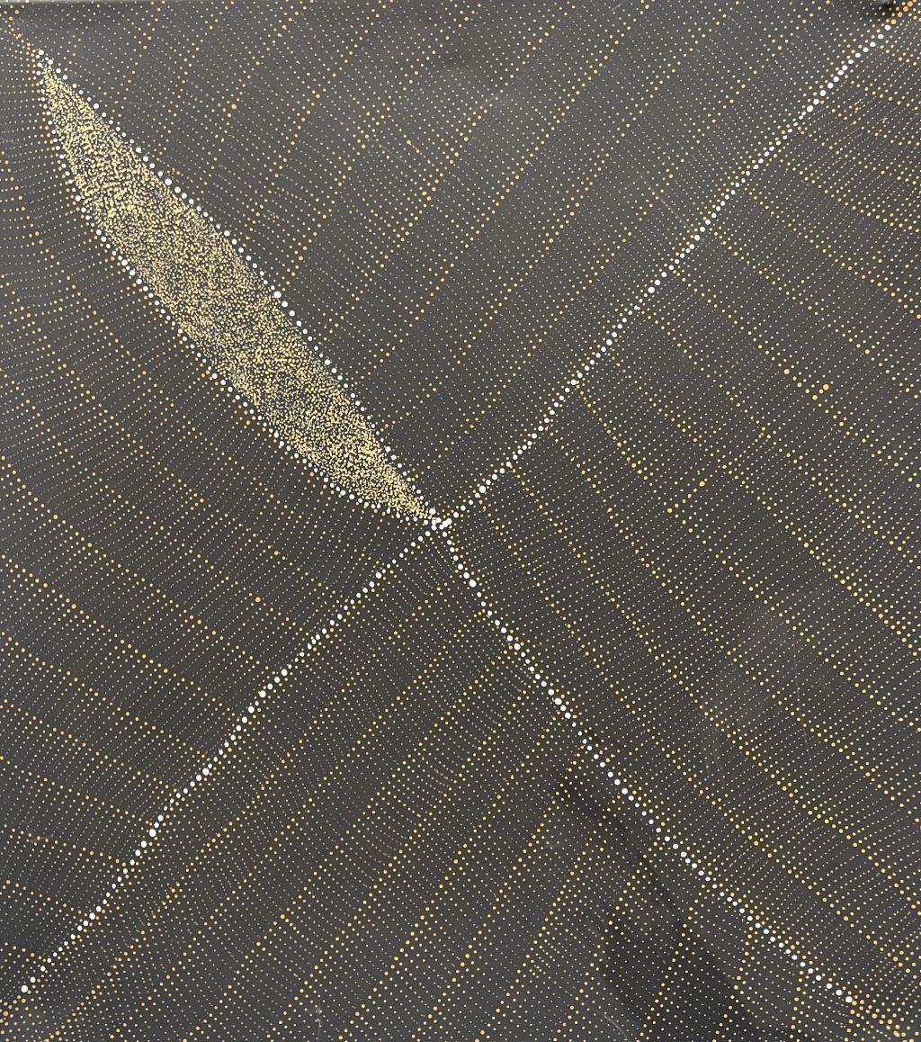 She paints Emu and Dingo Dreamings as well as women hunting, but it is her Mountain Devil Lizard for which she is best known. This Dreaming tells of the need to heed the knowledge of elders and to exist as a group rather than individuals, a topic that was of the utmost importance to the nomadic desert people. Her work has been exhibited and collected by museums and collectors worldwide.