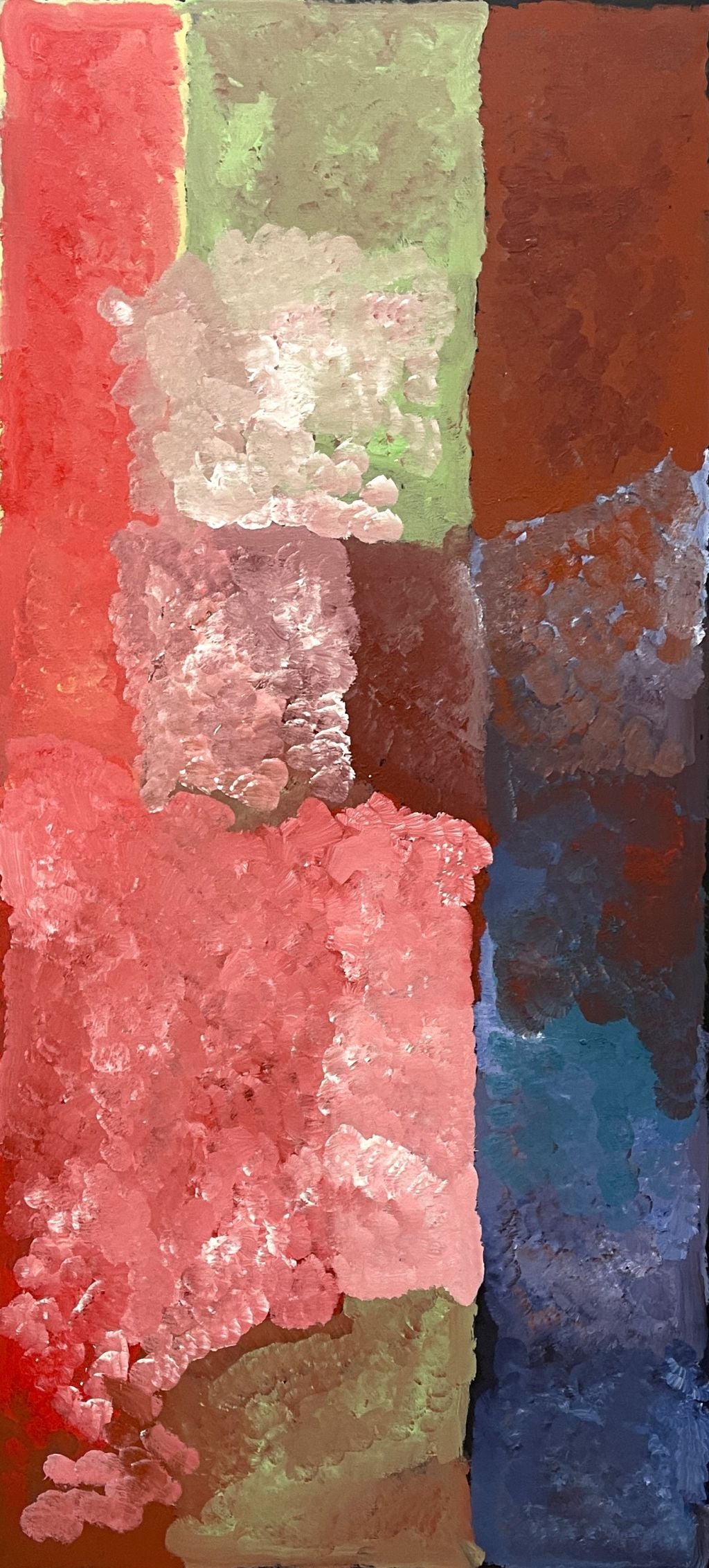 Known for his intricate portrayals of the Emu Dreaming, Kudditji has developed several abstract depictions of this story. With a strong sense of colour much like his famous sister, Emily Kame Kngwarreye, he overlays paint that produces depth and design. His paintings have an incredible energy, vibrancy and appeal, that have made this senior aboriginal elder's paintings a "must have" with many contemporary art collectors throughout the world.