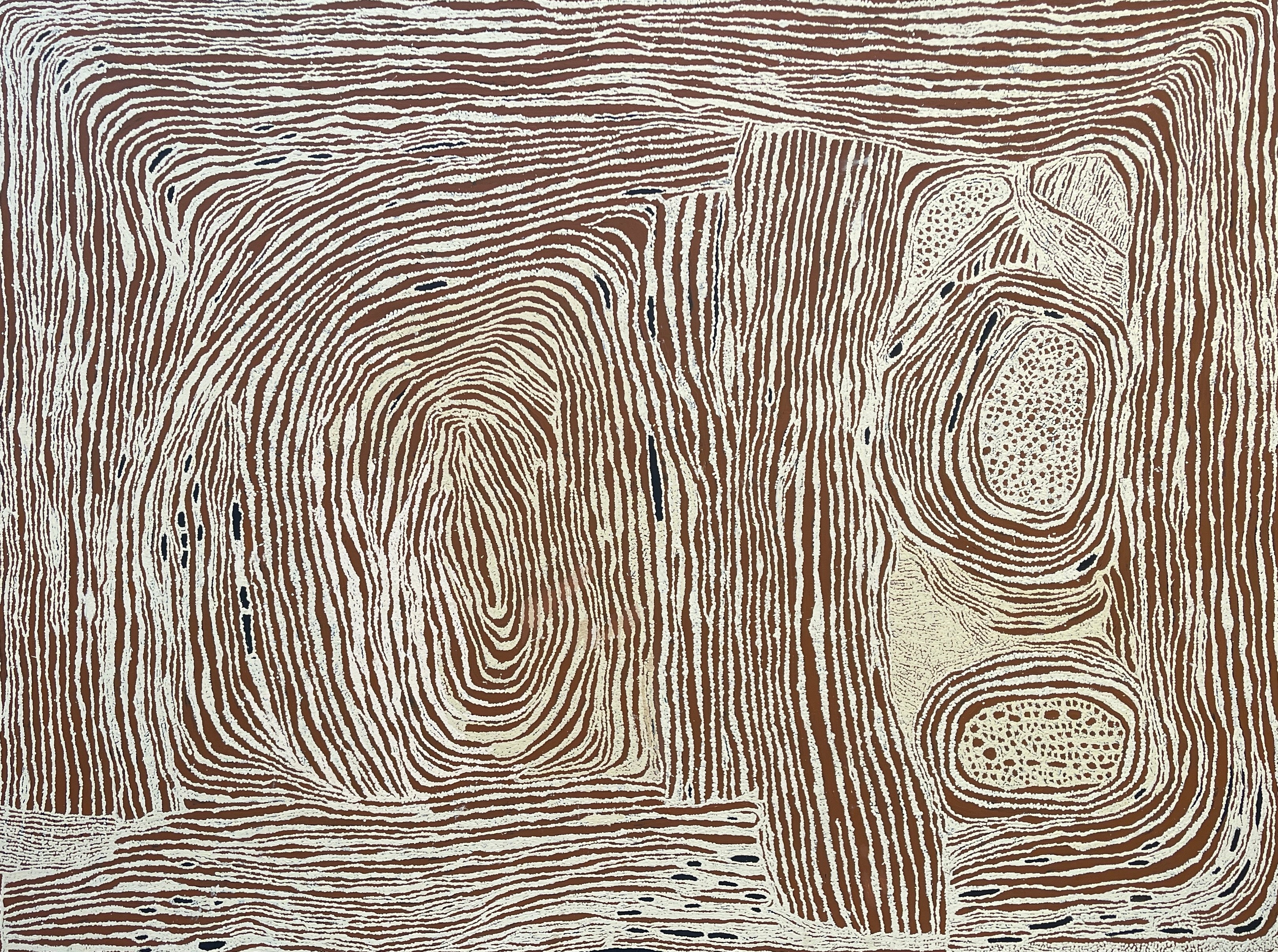 Nyurapayia then painted for Papunya Tula artists. Her energetic forms, very contemporary, along with a strong colour palette has made her a popular artist with galleries, museums and collectors worldwide.
