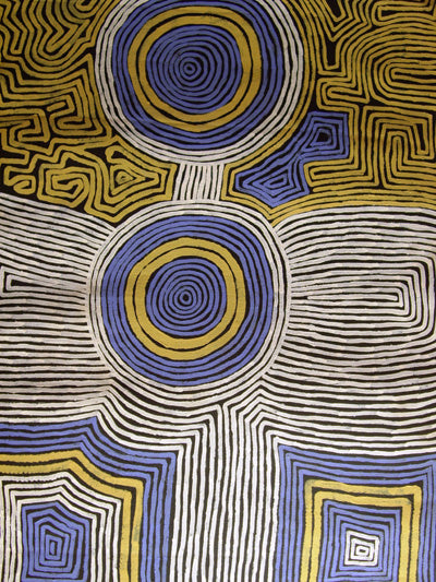 Ronnie began painting in 1971 in Papunya at the advent of the contemporary acrylic art movement. His work uses a combination of rhythm, minimalistic and contrasting colour selection to amplify the beauty of his Dreamings.