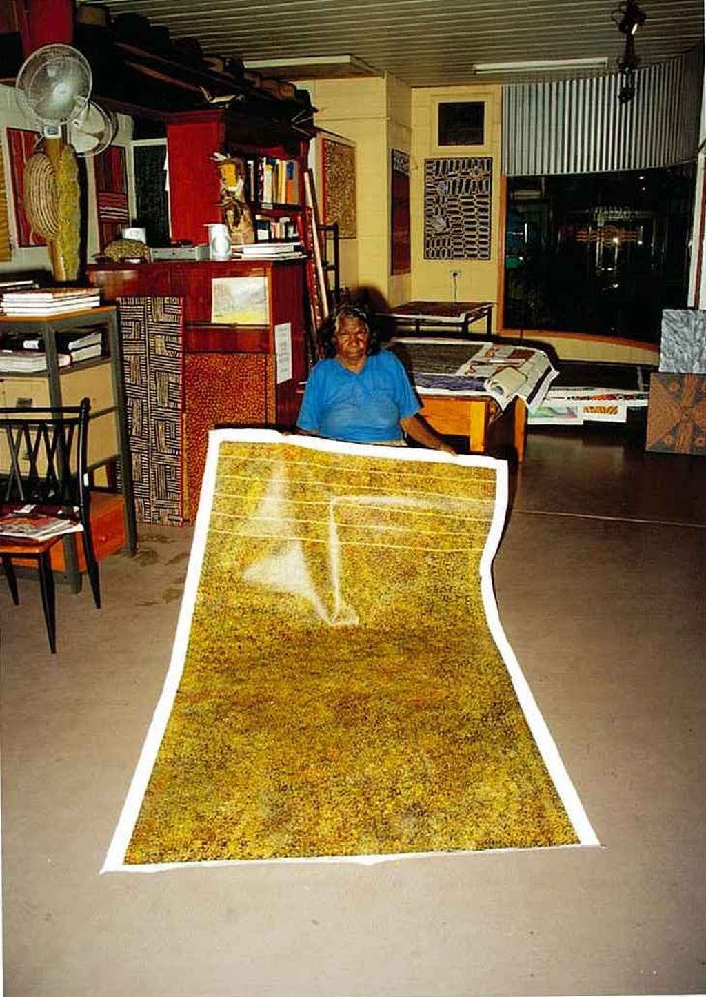 She paints Emu and Dingo Dreamings as well as women hunting, but it is her Mountain Devil Lizard for which she is best known. This Dreaming tells of the need to heed the knowledge of elders and to exist as a group rather than individuals, a topic that was of the utmost importance to the nomadic desert people. Her work has been exhibited and collected by museums and collectors worldwide.