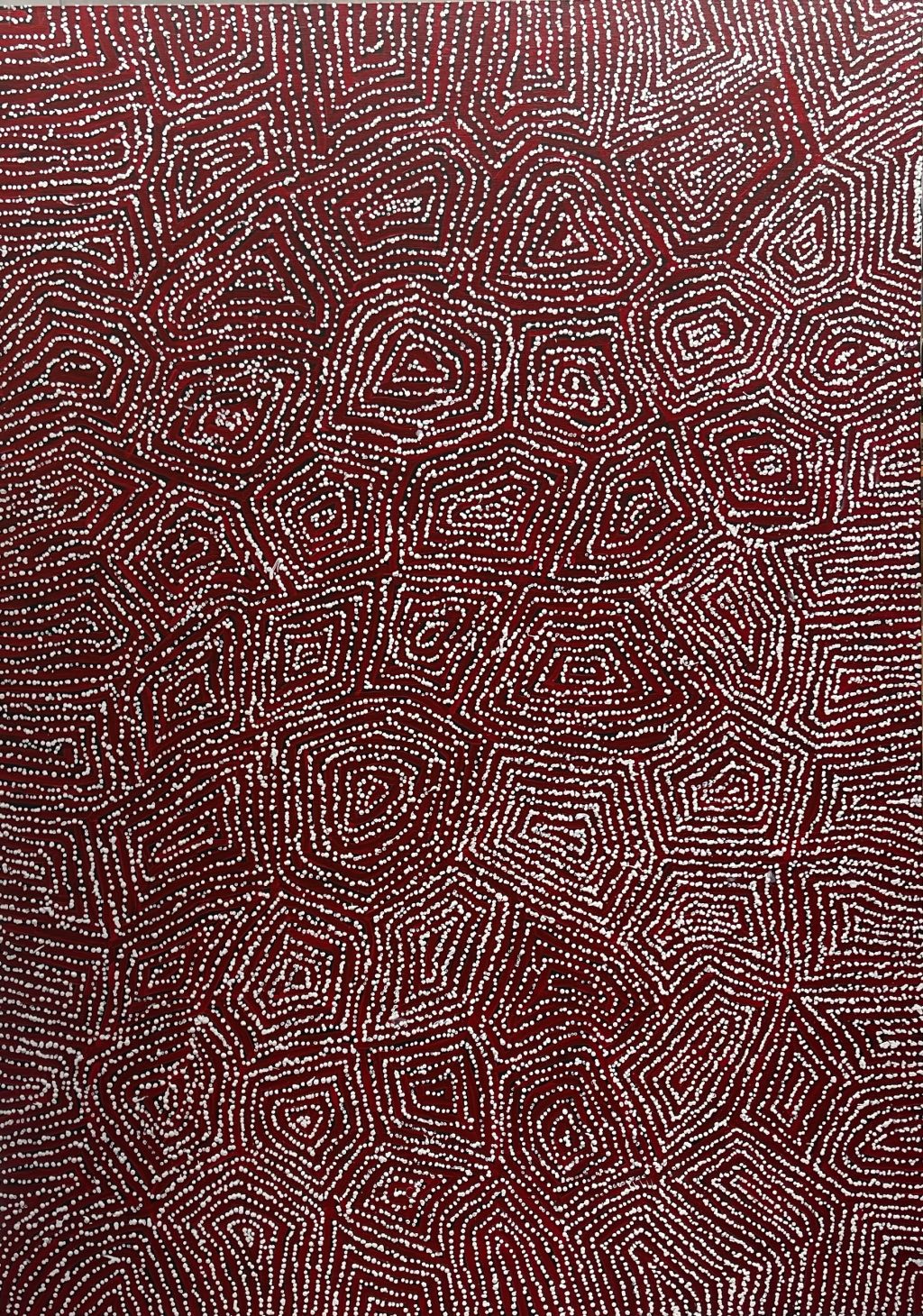 It wasn't until 1984 that he began painting with the Papunya artists. He has a distinctive, mesmeric style that depicts Dreamings of Tingari Cycle of his ancestral lands.