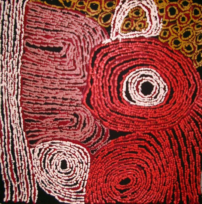 Walangkura's work, although powerful, is very feminine, she often paints on a very large scale. Her use of a more muted, pastel palette on many of her works is particularly effective.
