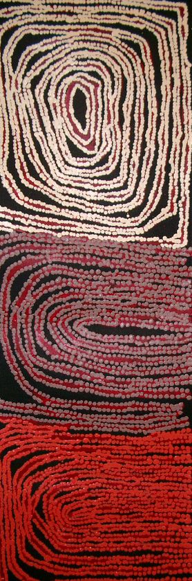Walangkura's work, although powerful, is very feminine, she often paints on a very large scale. Her use of a more muted, pastel palette on many of her works is particularly effective.