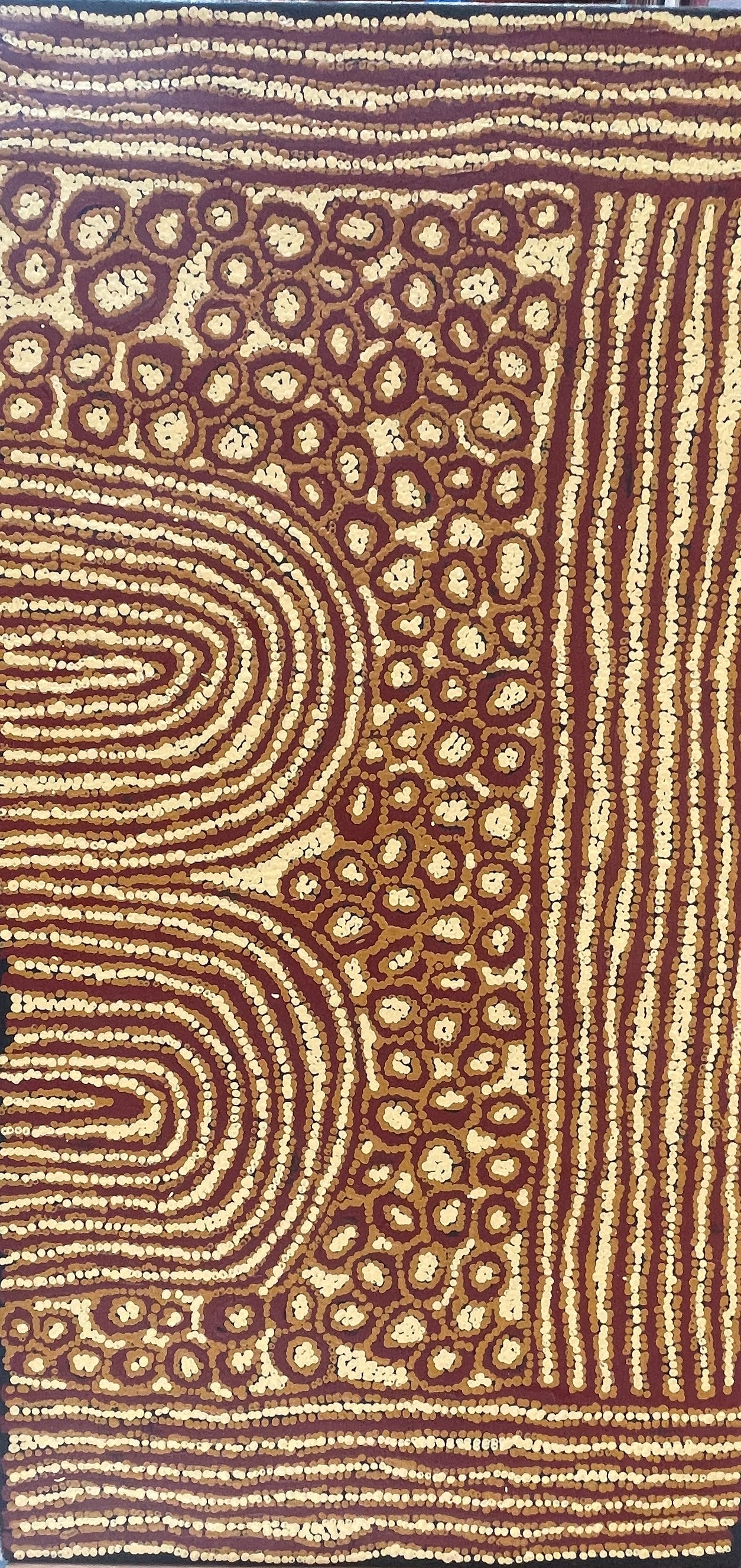Her work is imbued with powerful energy and passion that depict creation stories and ceremonial sites associated with Tjukurrpa of her Pintupi homelands. In 1995 Walangkura participated in the historical Kintore/ Haasts Bluff collaboration Minyma Tjukurrpa and began painting for Papunya Tula Artists in 1996.