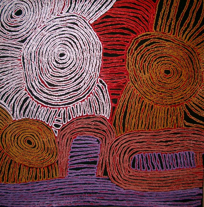 Walangkura's work, although powerful, is very feminine, she often paints on a very large scale. Her use of a more muted, pastel palette on many of her works is particularly effective.