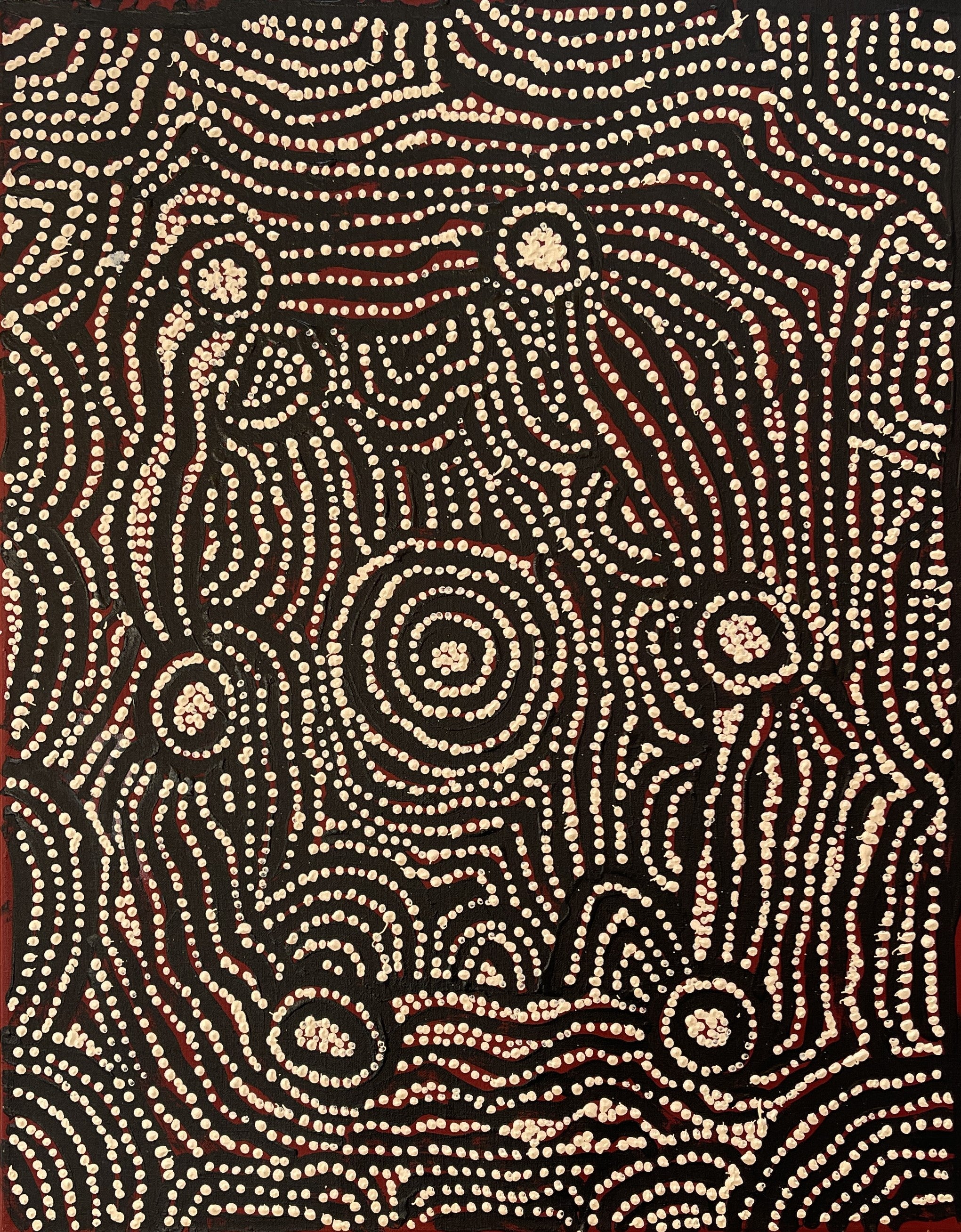 She uses traditional motifs to depict her Tjukurrpa, which are the sites associated with women's ceremonies referred to as Minyma Inmaku. The combination of traditional circular motifs and often subdued palette allows Maisey to convey the love for her country and her desire to use painting as a means to record and preserve her culture for future generations.