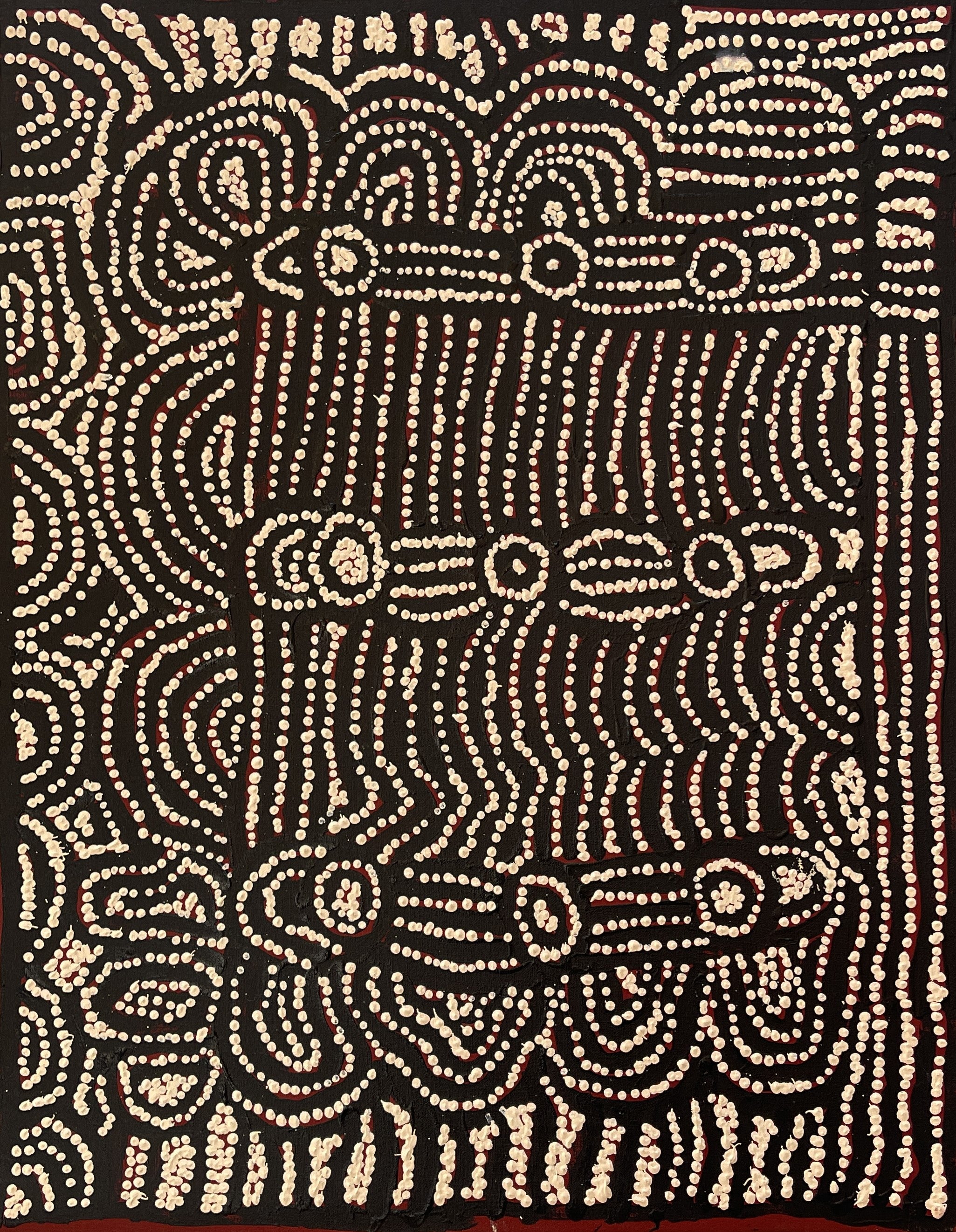 She uses traditional motifs to depict her Tjukurrpa, which are the sites associated with women's ceremonies referred to as Minyma Inmaku. The combination of traditional circular motifs and often subdued palette allows Maisey to convey the love for her country and her desire to use painting as a means to record and preserve her culture for future generations.