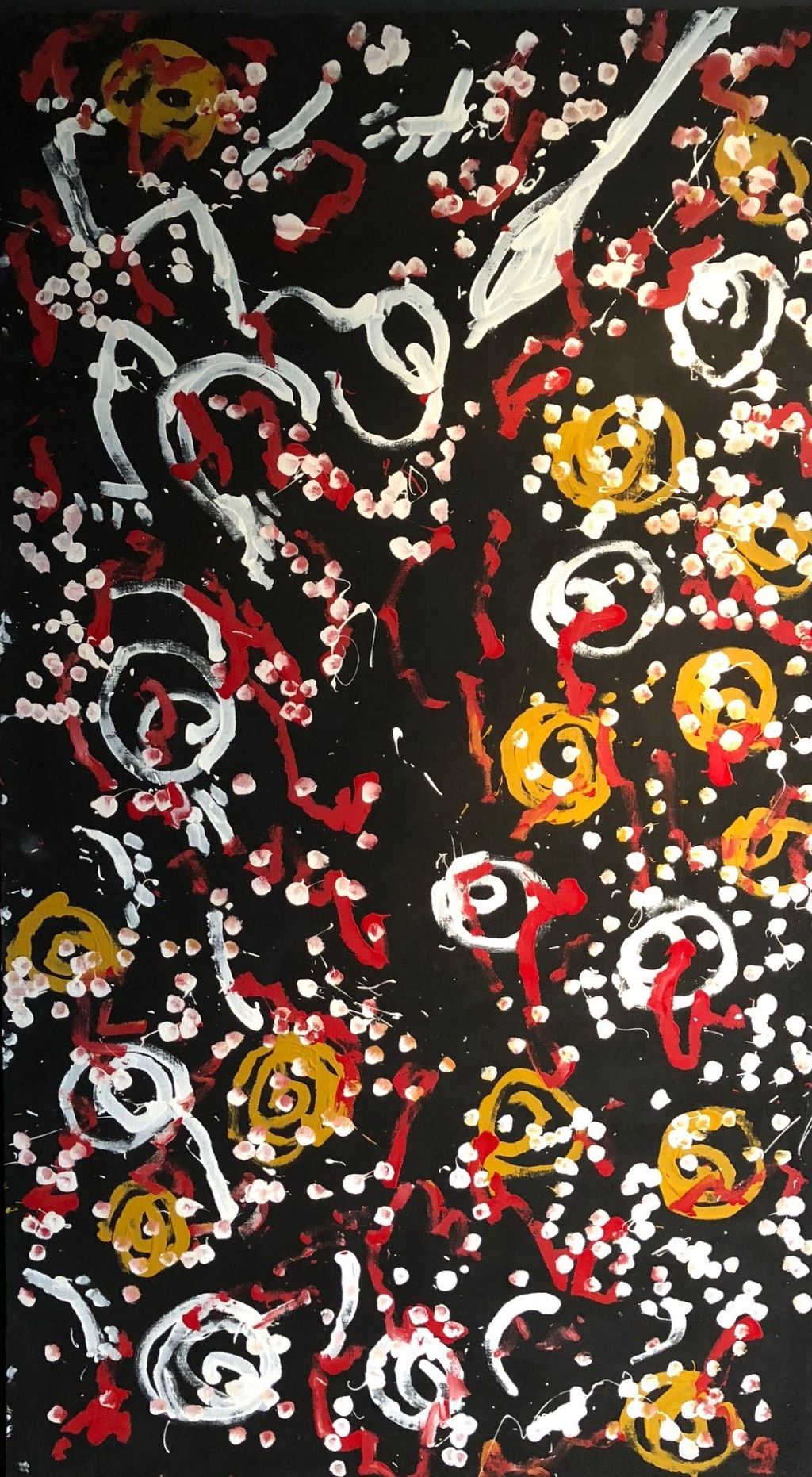His work is imbued with an incredible sense of movement and ceremony that can only be understood through experiencing his paintings in the flesh. Geoffery Bardon the initiator of the acrylic movement fondly recollected that Johnny would paint with intense level of intuitive concentration. The body of work that Johnny has left behind contains some of the finest examples of not just Aboriginal, but Australian abstract painting. His work features in many public and private collections throughout the world.