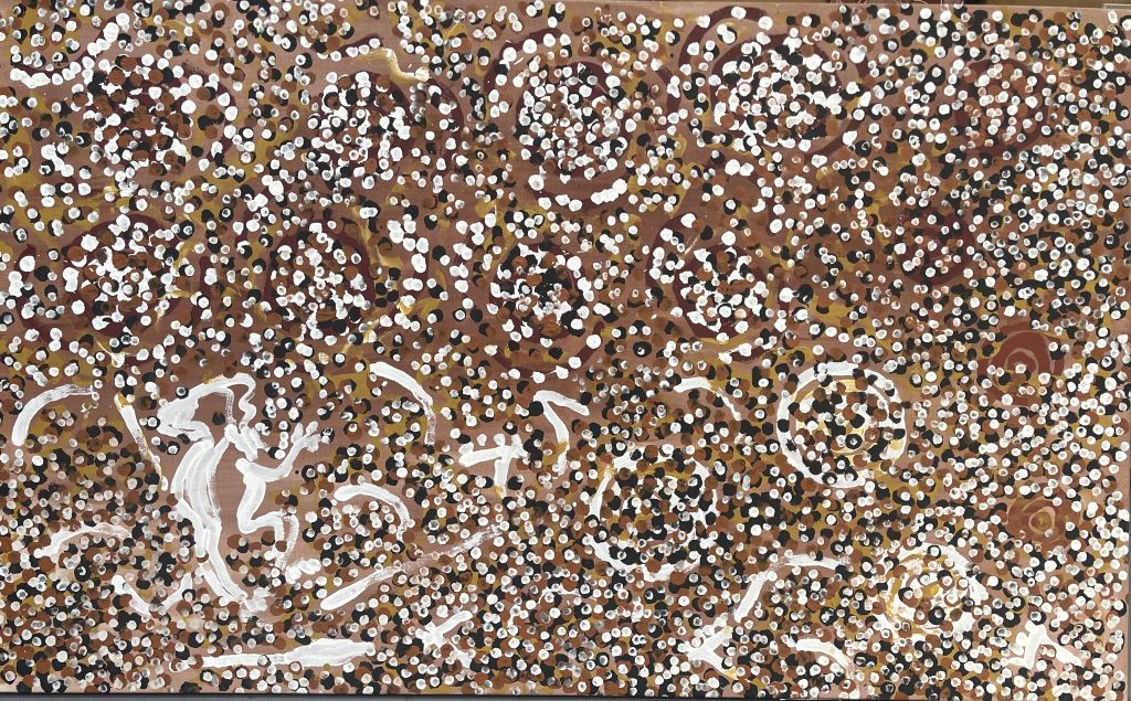 His work is imbued with an incredible sense of movement and ceremony that can only be understood through experiencing his paintings in the flesh. Geoffery Bardon the initiator of the acrylic movement fondly recollected that Johnny would paint with intense level of intuitive concentration. The body of work that Johnny has left behind contains some of the finest examples of not just Aboriginal, but Australian abstract painting. His work features in many public and private collections throughout the world.