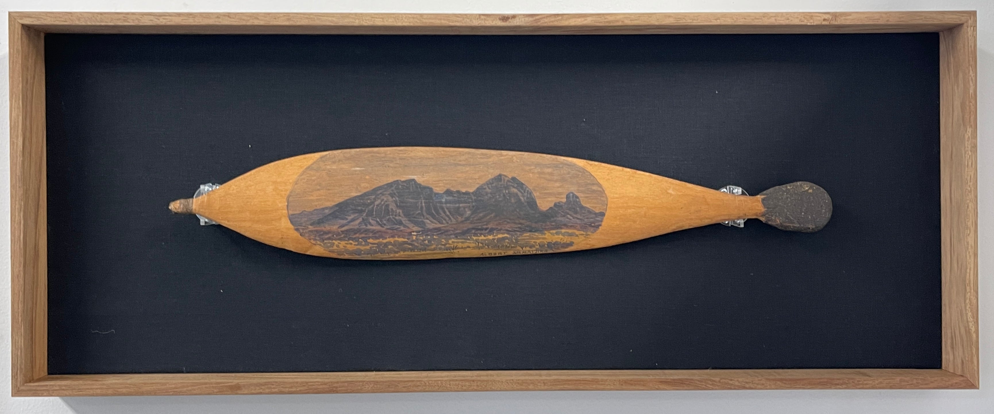 Albert is known for painting on such artefacts, and this is a great example of that work. This woomera comes in a boxed frame to both protect the artefact and make it easier to display.