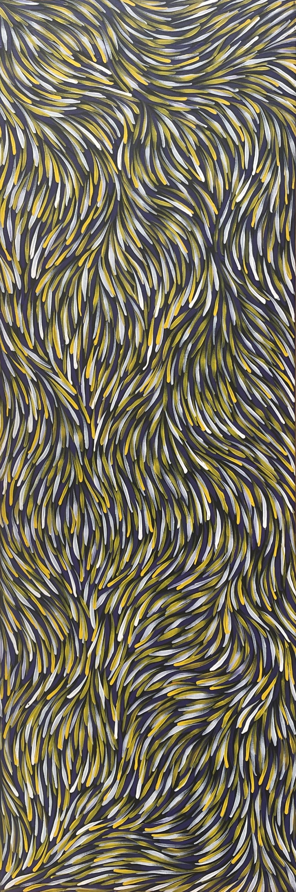 Rosemary is part of a famous painting family that included the late Emily Kame Kngwarreye. Like Emily, Rosemary began her formal painting career on the Holmes a Court "summer Project" in 1988. Her paintings are colourful, lyrical depictions of bush tucker, medicine and native fauna.