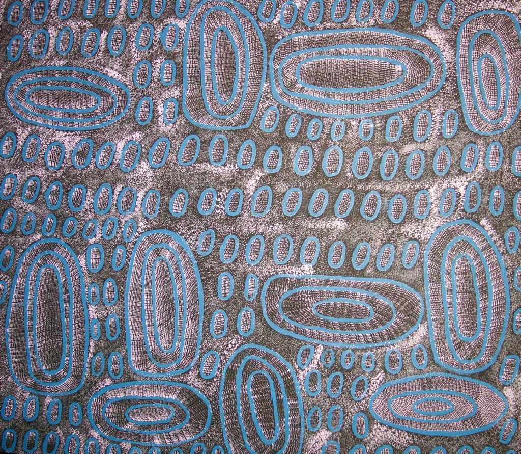 Ngoia took up painting in 1997 and painting stories associated with her father and brothers country. Through her distinctive designs she explores different representations of the swamps, lakes and spinifex country in these areas. In 2006 she was awarded with Aboriginal art‘s most prestigious award, The Telstra Art Award. She continues to produce beautifully crafted and evocative canvases of her Dreamings. She is represented in important private and public collections throughout the world.
