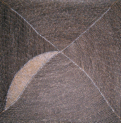 She paints Emu and Dingo Dreamings as well as women hunting, but it is her Mountain Devil Lizard for which she is best known. This Dreaming tells of the need to heed the knowledge of elders and to exist as a group rather than individuals, a topic that was of the utmost importance to the nomadic desert people. Her work has been exhibited and collected by museums and collectors worldwide.