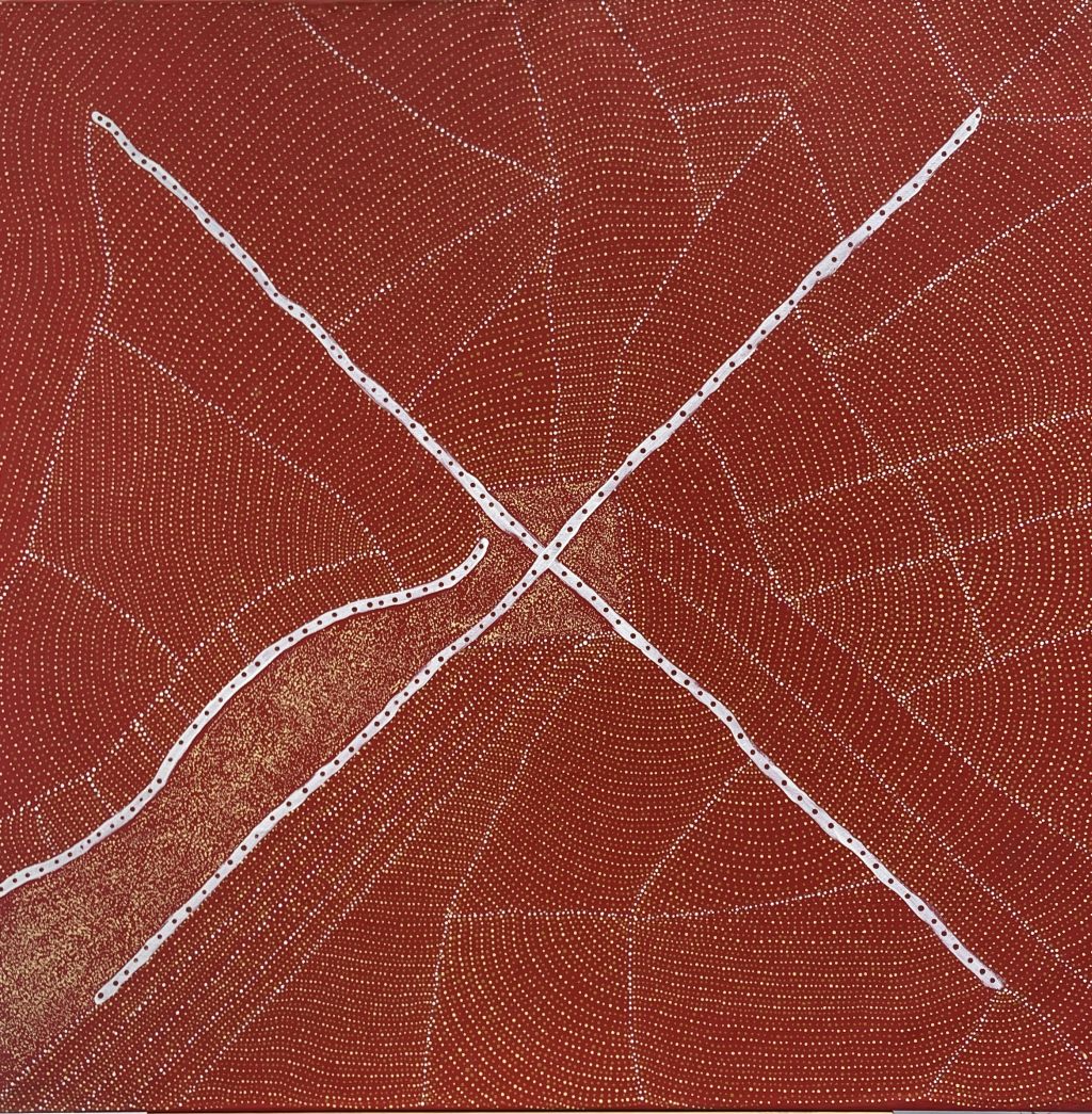 She paints Emu and Dingo Dreamings as well as women hunting, but it is her Mountain Devil Lizard for which she is best known. This Dreaming tells of the need to heed the knowledge of elders and to exist as a group rather than individuals, a topic that was of the utmost importance to the nomadic desert people. Her work has been exhibited and collected by museums and collectors worldwide.
