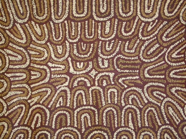 Esther enjoys painting in the company of the senior artists such as Naata and Nancy but preserves her own individual approach to producing fine examples of Western Desert art.