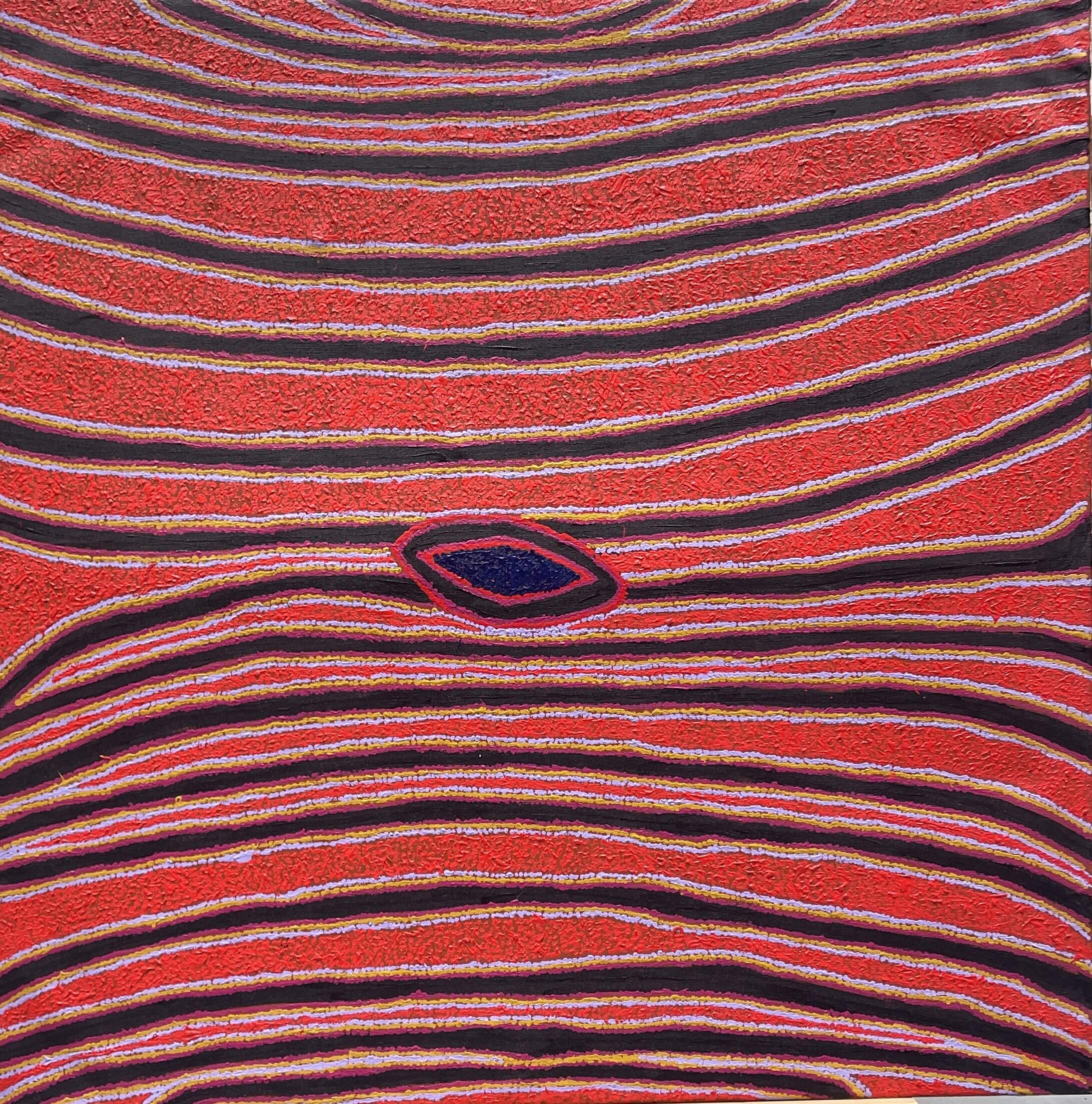As a second generation artist Eileen learned to paint from her parents, it was not until the death of her mother in 1999 that Eileen began to paint her own stories. She has become an important figure in the contemporary Aboriginal art world, interpreting her main subject, her father's birth site, Tjitjurrulnga (also known as Titjurrulpa), a rockhole to the west of Kintore. Eileen's work is instantly recognisable, with bold, brilliant colours, great contrasts, and intricate compositions.