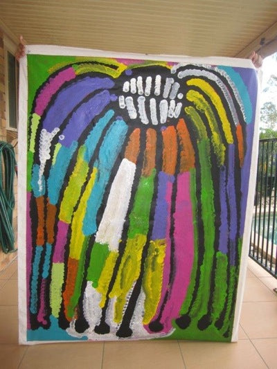 She began painting with a small group of women who collectively produced the first women's paintings for the Wanayaka Art Centre in Lajamanu. Her work depicts Dreamings of her country Yumurrpa, near the Granites in the Tanami Desert in the Northern Territory. With her unique and contemporary style using clashes of vibrant colour, Lorna paints her bush tucker Dreamtime stories; including bush potato and bush cabbage.