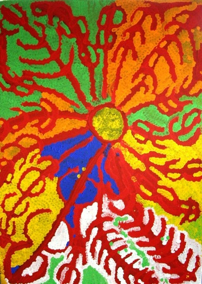 She began painting with a small group of women who collectively produced the first women's paintings for the Wanayaka Art Centre in Lajamanu. Her work depicts Dreamings of her country Yumurrpa, near the Granites in the Tanami Desert in the Northern Territory. With her unique and contemporary style using clashes of vibrant colour, Lorna paints her bush tucker Dreamtime stories; including bush potato and bush cabbage.