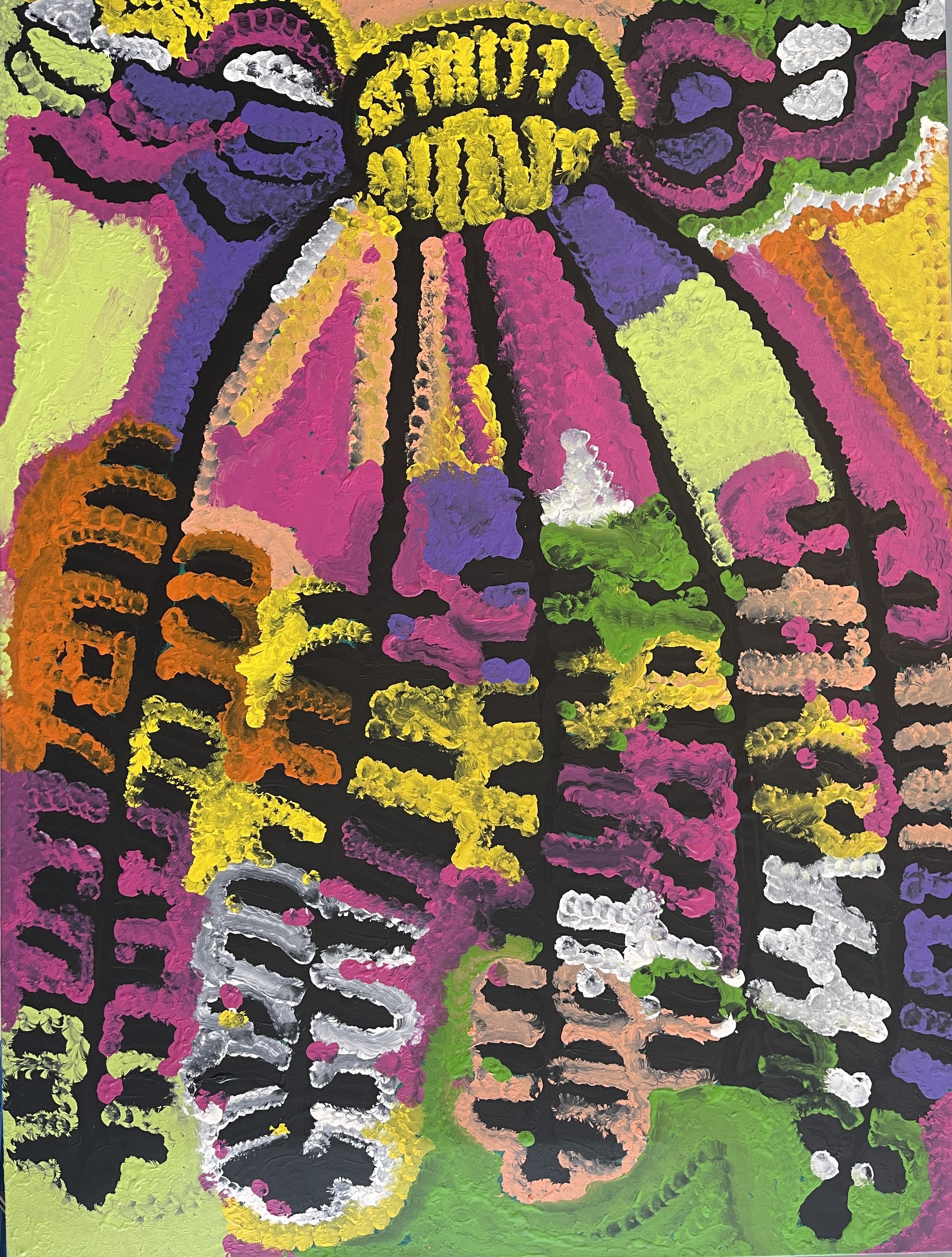 Lorna had been painting since 1986. She began painting with a small group of women who collectively produced the first women's paintings for the Wanayaka Art Centre in Lajamanu. Her work depicts Dreamings of her country Yumurrpa, near the Granites in the Tanami Desert in the Northern Territory. With her unique and contemporary style using clashes of vibrant colour, Lorna paints her bush tucker Dreamtime stories; including bush potato and bush cabbage.