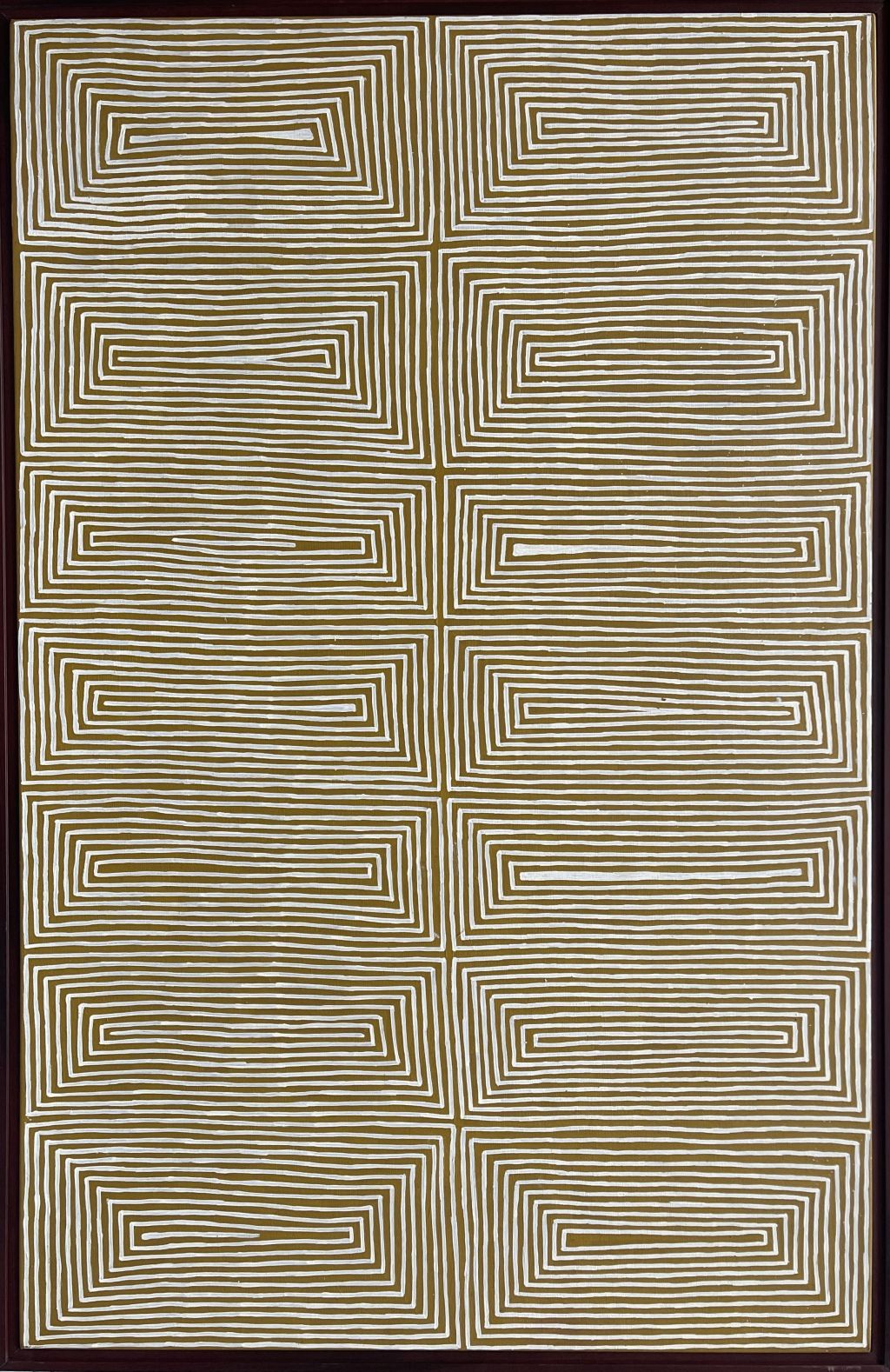 Many of his eye catching, lineal and contrasting paintings now belong in important Australian gallery collections such as the Queensland Art Gallery, National Gallery of Victoria and Art Gallery of New South Wales. He is the brother of acclaimed women painters Naata and Nancy Ross Nungurrayi.