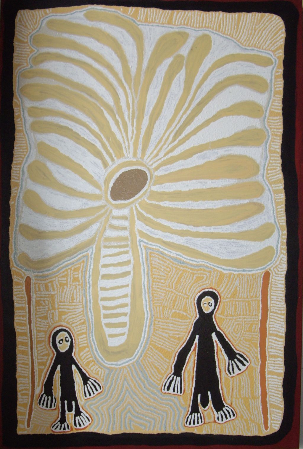 Her Dreamings include Tingari Dreamings, her father's Emu story & mother's Snake story which depict both mythological stories & actual events of traditional life in the desert.