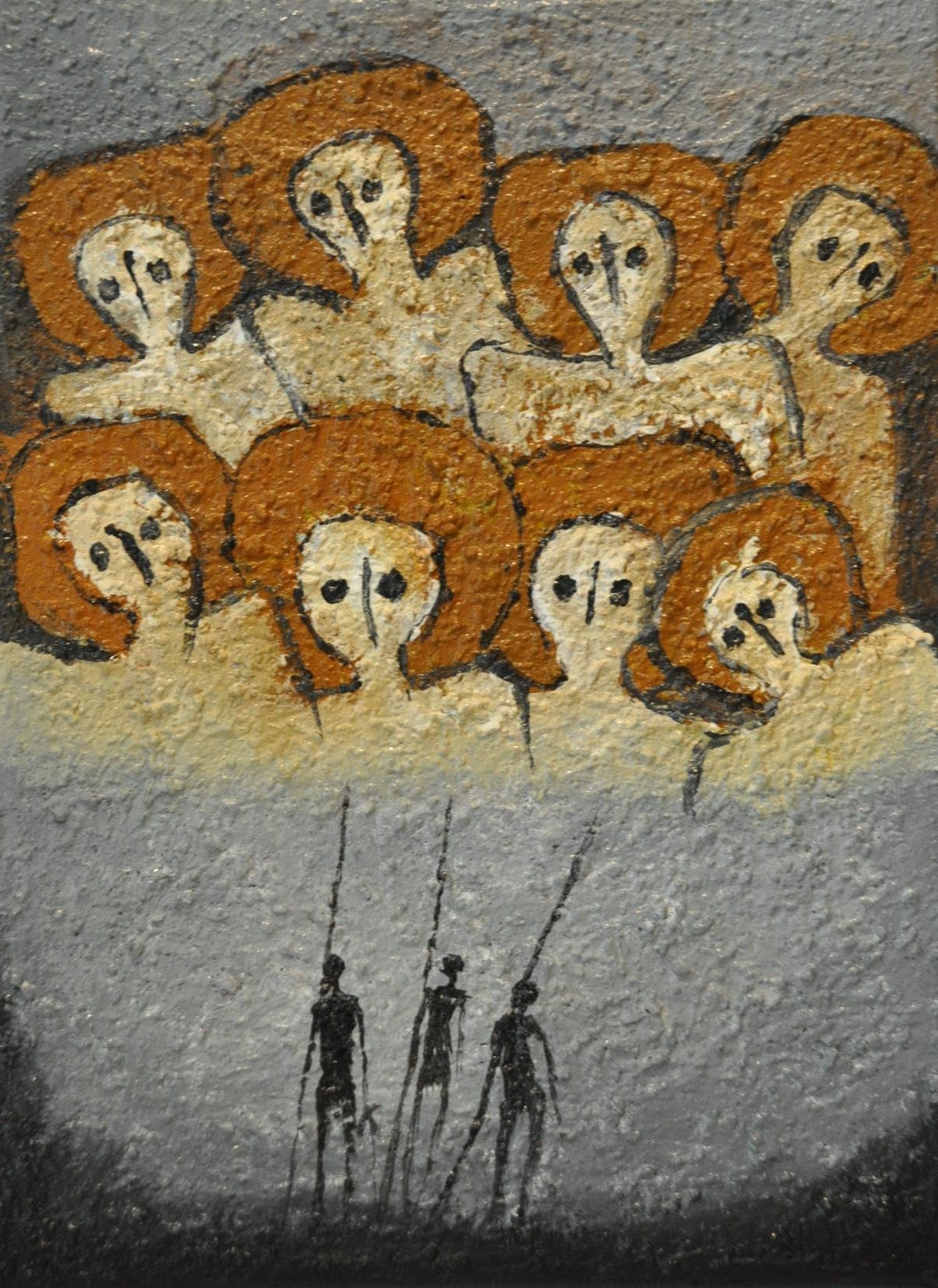 Hughie Ahwon is an artist from the Kimberly region, and his art style is unique among his peers. Usually incorporating 'Wandjinas' - cloud and rain spirits that have been present in artworks from Northwestern Australia for over 4000 years, and often utilizing ochre and acrylic paint in concert to create great texture and depth to his work - Hughie has an immediately recognisable style.
