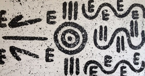 The central line represents the distinctive track made in the sand by the kangaroo's tail, with the hind legs either side. Traditionally, Kangaroo ancestors angered Warnayarra (The Rainbow Snake) at Mawarriji, a sacred site near Mt Singleton. They tried to punish the Kangaroo Men with a ferocious storm of wind, rain, and lightning. The Kangaroo Men hid in a cave for several days and waited for the storm to pass.