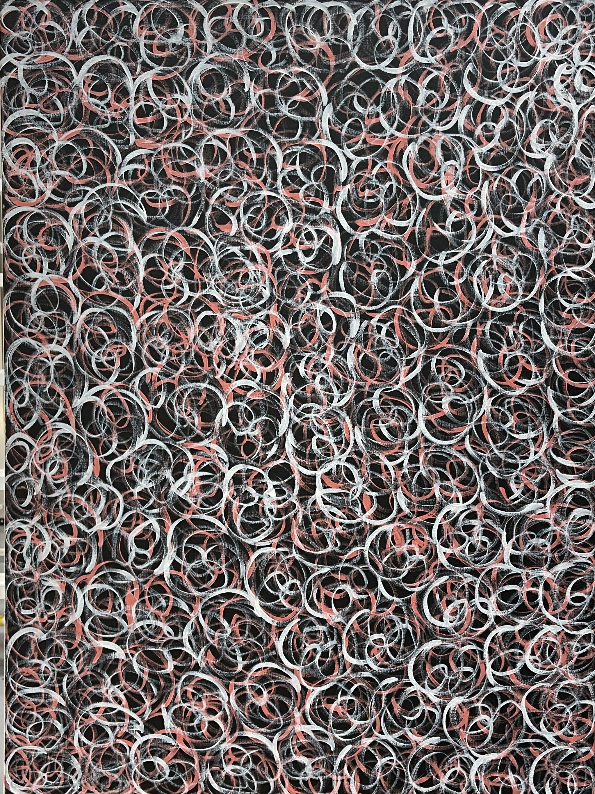 Gloria's work has evolved from strictly body paint designs in her early years, to more abstracted explorations of colour that express her mastery of the acrylic medium. Her work features in many important national and international collections. Gloria's paintings are typified by their floral look, ranging form simple black and white designs to multi coloured patterns that seem to twist or move the longer you look at them.