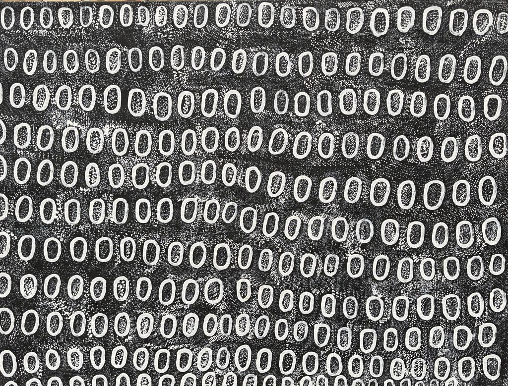 Ngoia took up painting in 1997 and painting stories associated with her father and brothers country. Through her distinctive designs she explores different representations of the swamps, lakes and spinifex country in these areas. In 2006 she was awarded with Aboriginal art‘s most prestigious award, The Telstra Art Award. She continues to produce beautifully crafted and evocative canvases of her dreamings. She is represented in important private and public collections throughout the world.