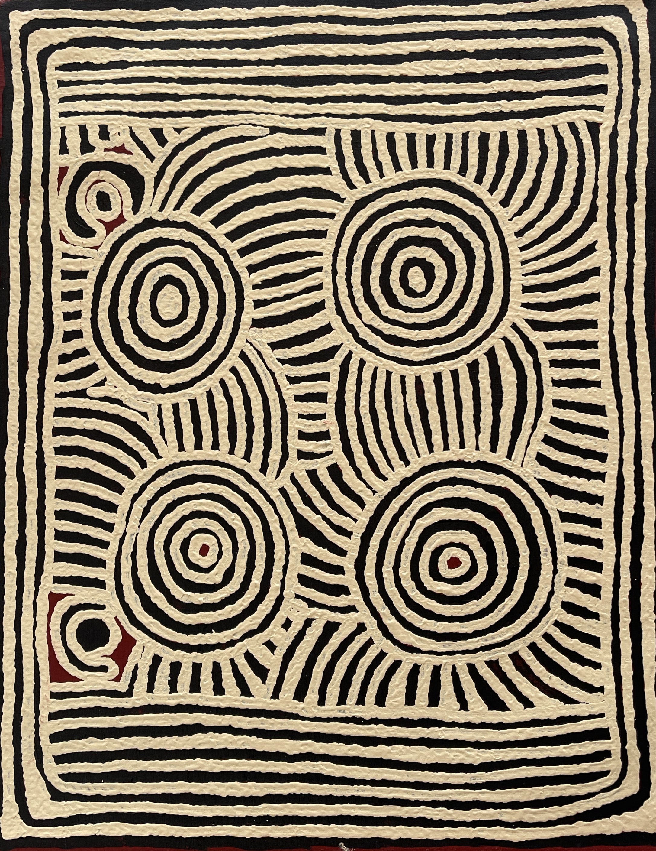 Tjawina paints her mother's and father's dreaming stories. These include the sites of Yumari, Punkilpirri and Tjalili. These sites are important for ceremonies and as reliable sources for water and traditional food plants.